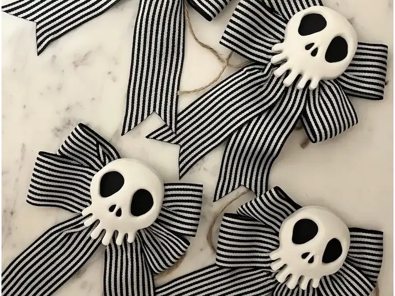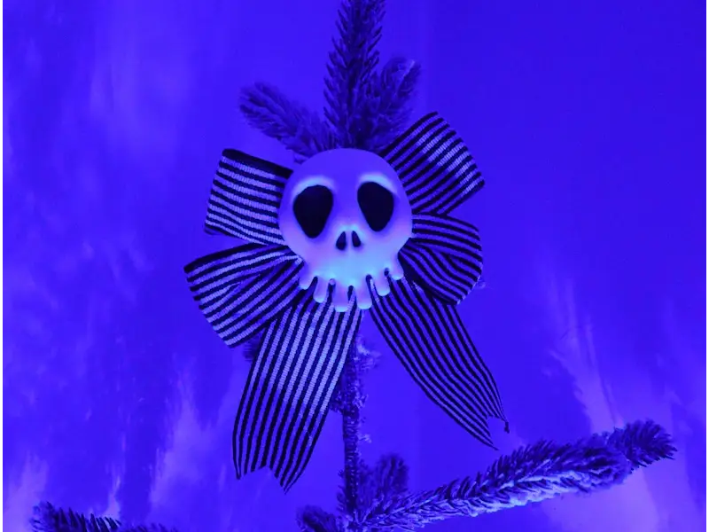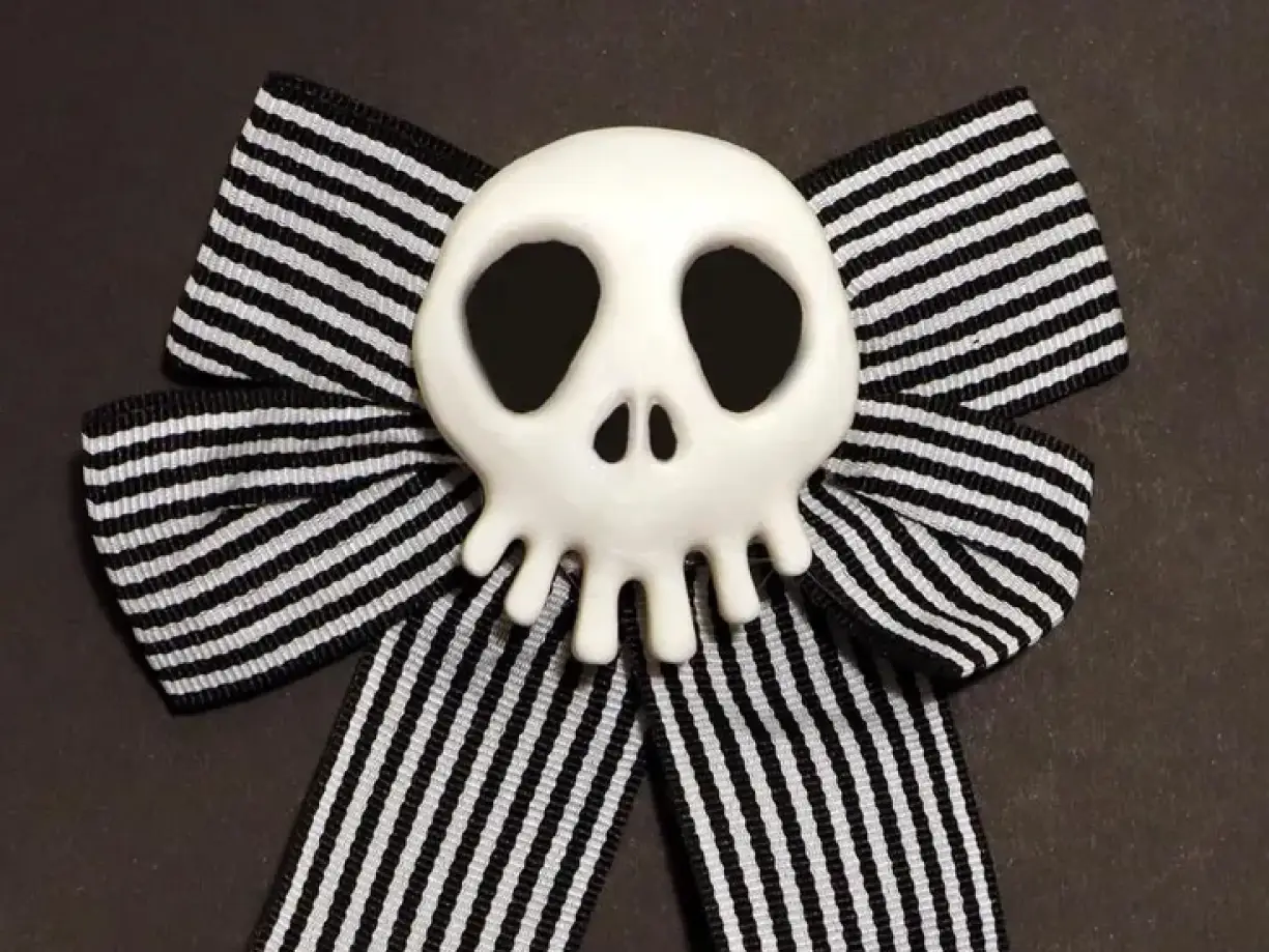 Your skull tree topper measures approximately 5 inches wide, 6.5 inches tall, and 0.75 inches deep. It’s lightweight and designed to sit perfectly on top of a tree, attach to a wreath, or hang as a bold ornament. Each piece is 3D printed in-house with attention to detail and spooky character.